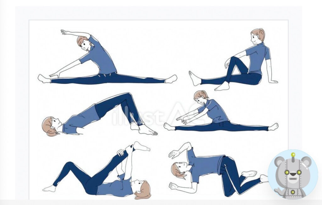 難しいポーズはありません、筋力を使って軽く鍛えしっかり伸ばすを繰り返していきます。