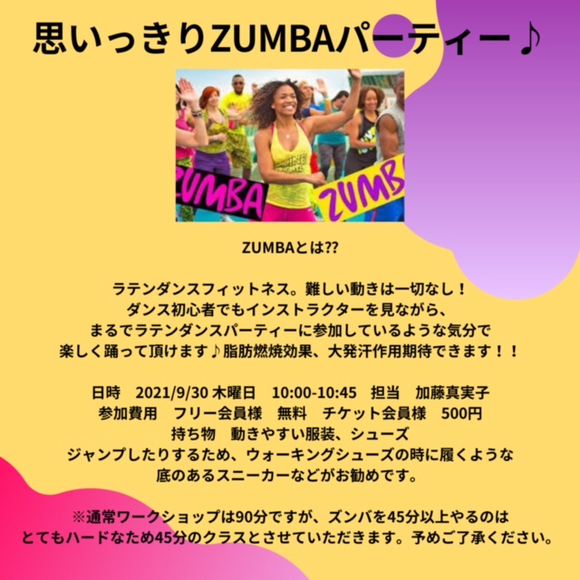 ZUMBAの特別レッスンを担当させていただきます^_^