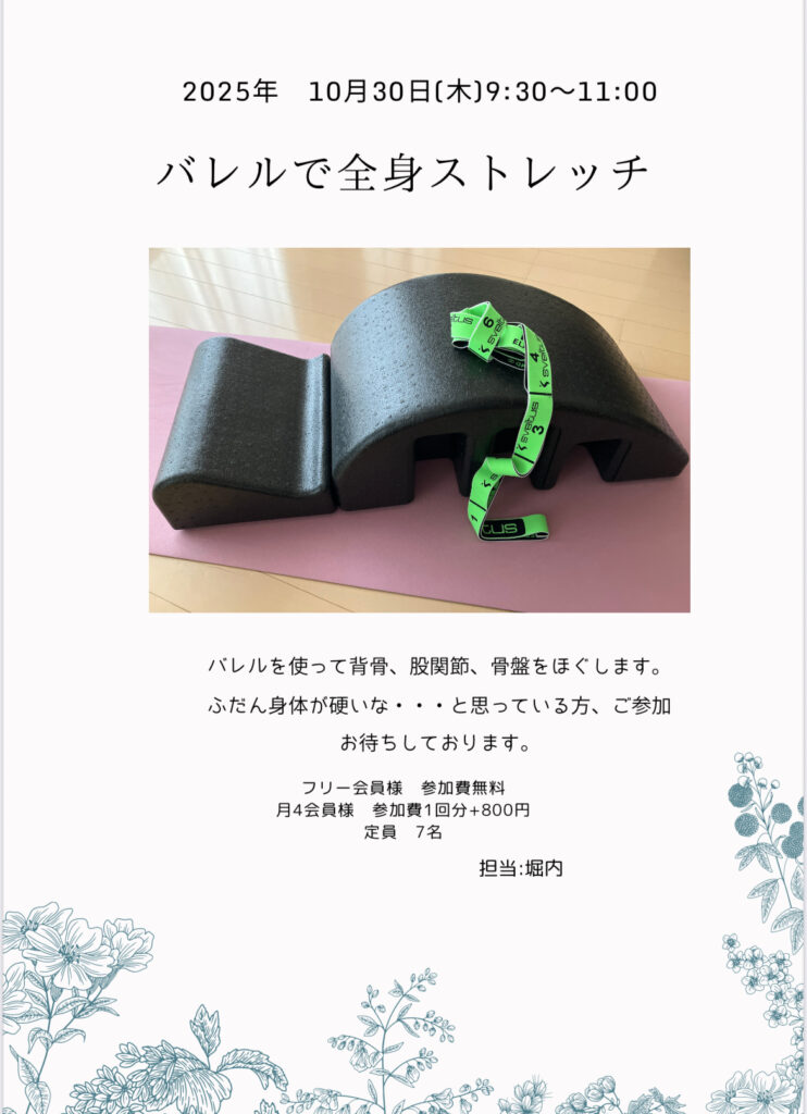 パレルを使って背骨、股関節、骨盤をほぐし、柔軟性、筋力アップ両方とも目指せるWSです。