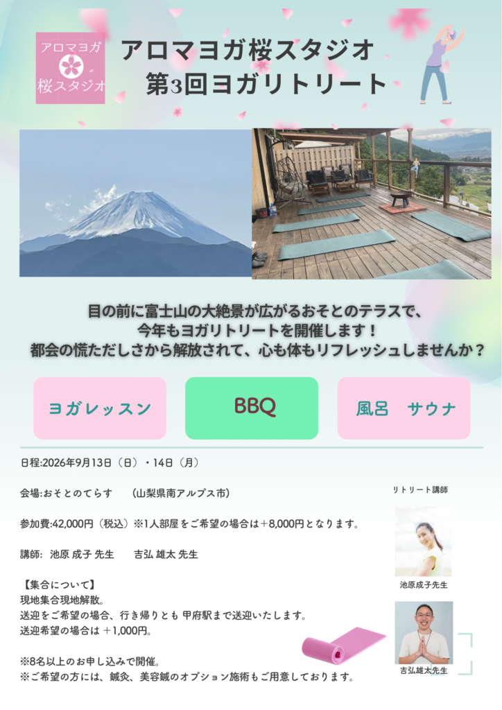 ヨガリトリートのお知らせです🧘